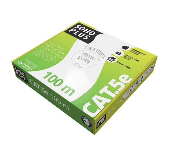 100% Cobre, cabo sólido, 24 AWG, certificado ANATEL, e capa externa em PVC retardante à chama (CMX).
